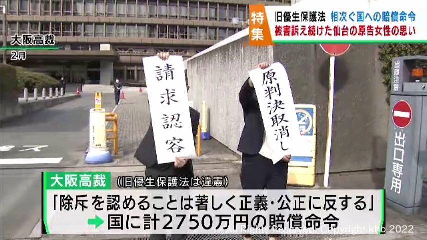 障害がある人たちに不妊手術を強制していた、旧優生保護法を巡る裁判についてです。2月と3月に大阪高裁と東京高裁では、意見と認定し国に賠償を命じる判決が相次いで出されました。
