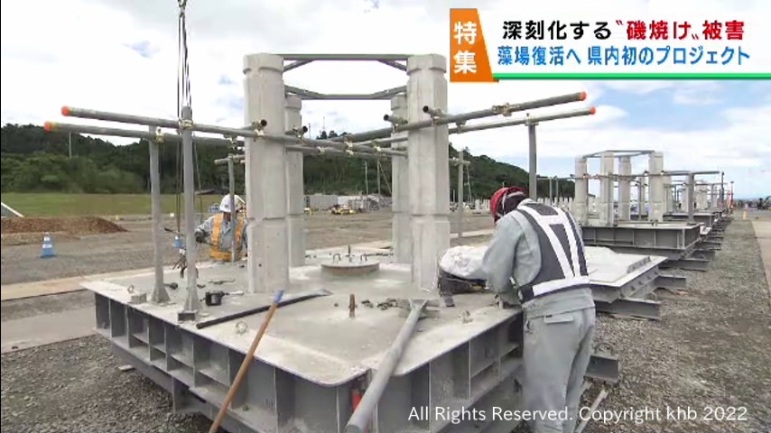 失われた藻場の復活へ。コンクリートブロックは、現在、表浜の漁港で組み立てなどの準備が行われていて、海に設置されるのは7月上旬の予定です。2029年度までに1770ヘクタールの藻場の再生を目指します。