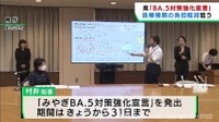 続いて、3年前の東日本台風で被害を受けた大郷町粕川地区の復旧工事現場を訪れ、現在の仮設堤防から外側80mまで川の幅を広げる工事の状況を確認しました。