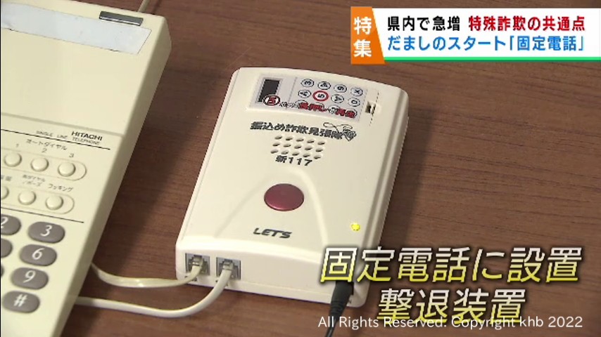 宮城県警本部生活安全企画課千田丈晴課長補佐「すり替え型の詐欺ですとか、オレオレ詐欺については固定電話に必ず電話がかかってきている現状ですので、固定電話の対策を強力に進めているところです」