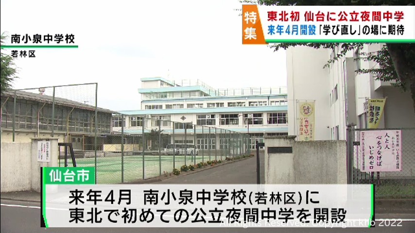 仙台市も2023年4月、若林区の南小泉中学校に東北で初めてとなる公立夜間中学を開設することを決めました。