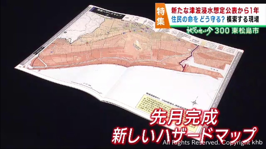1年かけて避難計画を見直してきた東松島市。4月に完成した新しいハザードマップです。県の浸水想定に基づき色分けされていて、指定避難所には浸水の深さが明記されています。