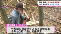 宮城県石巻市の大川小学校で9日、東日本大震災の追悼行事「大川竹あかり」の準備が行われました。