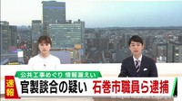 官製談合防止法違反の疑いで逮捕されたのは、石巻市職員の星洋一容疑者(50)、寺内友和容疑者(46)です。