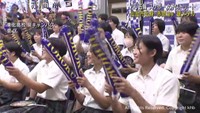東北高校ではパブリックビューイングが行われ、硬式野球部の生徒など約50人が熱い応援を送りました。