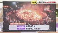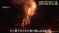 住民らは燃え盛る御神火に手を合わせて1年の無病息災や家内安全を祈っていました。