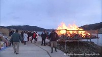 会場の「細倉マインパーク」では正午ごろから神事が行われ、住民らが持ち込んだ正月飾りやしめ縄などに火が移されると勢いよく炎が上がりました。