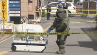 警察が周辺の道路を規制して対応にあたり、機動隊の爆発物処理班が午後7時25分、不審物を回収しました。