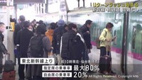 JR東日本によりますと、10日午前10時現在の東北新幹線の下りは、自由席の乗車率が50パーセントから90パーセントです。