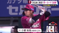 その後、5点差となり、迎えた5回。チャンスで得点圏打率リーグトップの村林。フォークをレフト前に運ぶタイムリー。1点を返すと6回には浅村。レフトスタンドへの8号ソロホームラン。3点差とします。