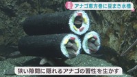 2月3日の節分を前にアナゴの恵方巻 仙台うみの杜水族館の恒例イベント