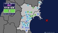 【地震】宮城県内で震度3 宮城県沖を震源とする最大震度3の地震が発生 津波の心配なし