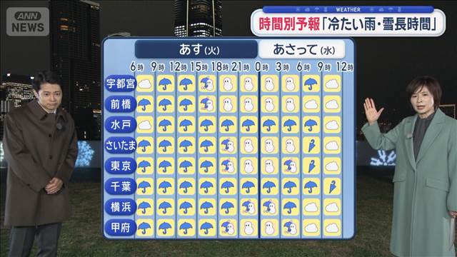 きょうの「全国の天気」はこちら、「あす各地で真冬並み ブルブル 夜から関東から東北で雪」です。