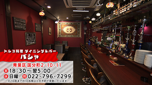 出演者紹介 ナマなキッチン 紹介したお店・情報 本間ちゃん流方言講座 6月18日(火曜日) あなたのお国の味は?トルコ料理 ダイニング&バー パシャ【住所】青葉区国分町2-10-11 【営業時間】18:30~翌5:00 【電話番号】022-796-7299 【定休日】日曜 ※2日前までの10名様以上の予約で営業いたします。