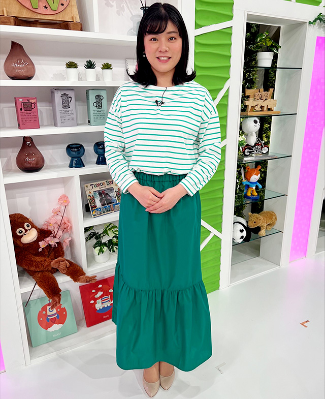 ボーダーカットソー 4400円、グリーンスカート 2200円